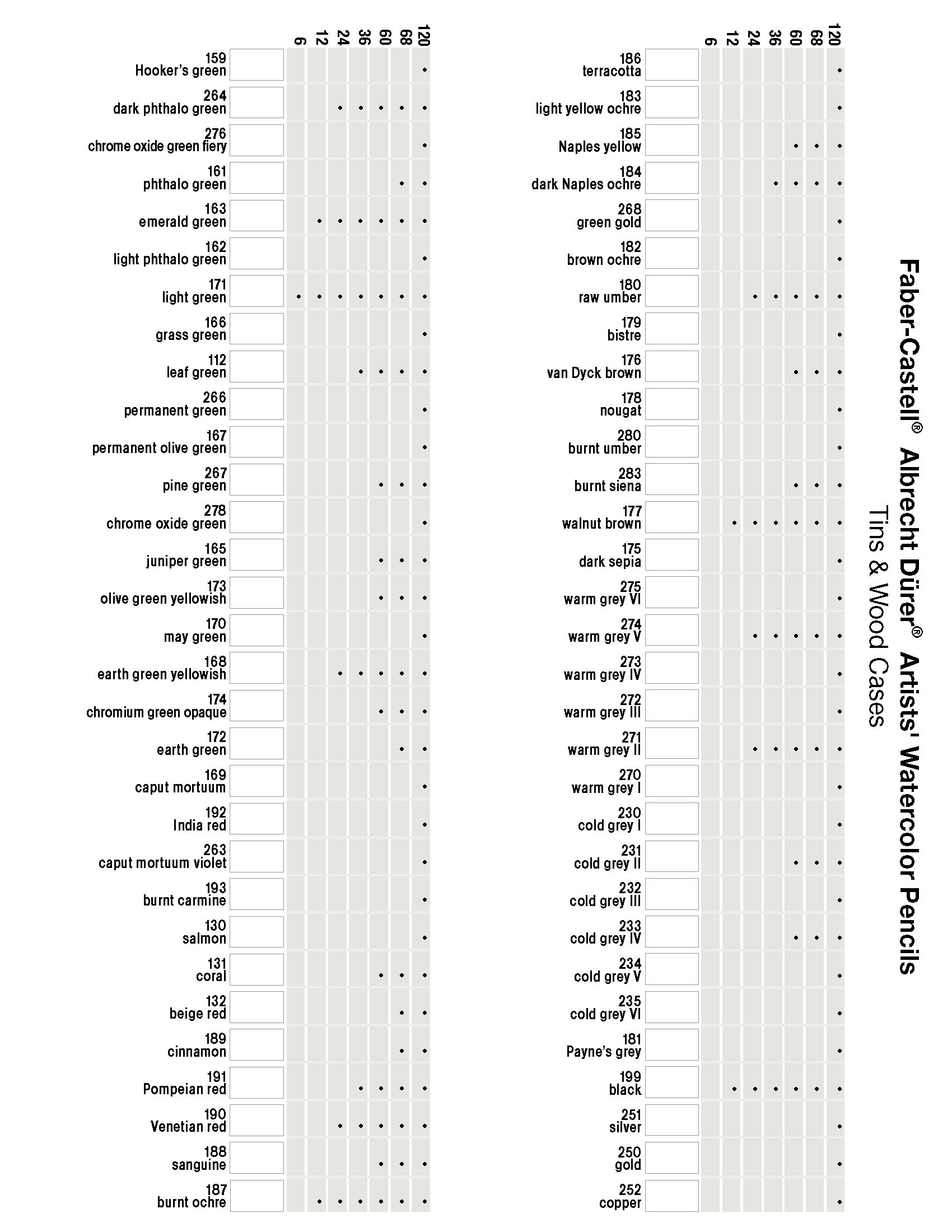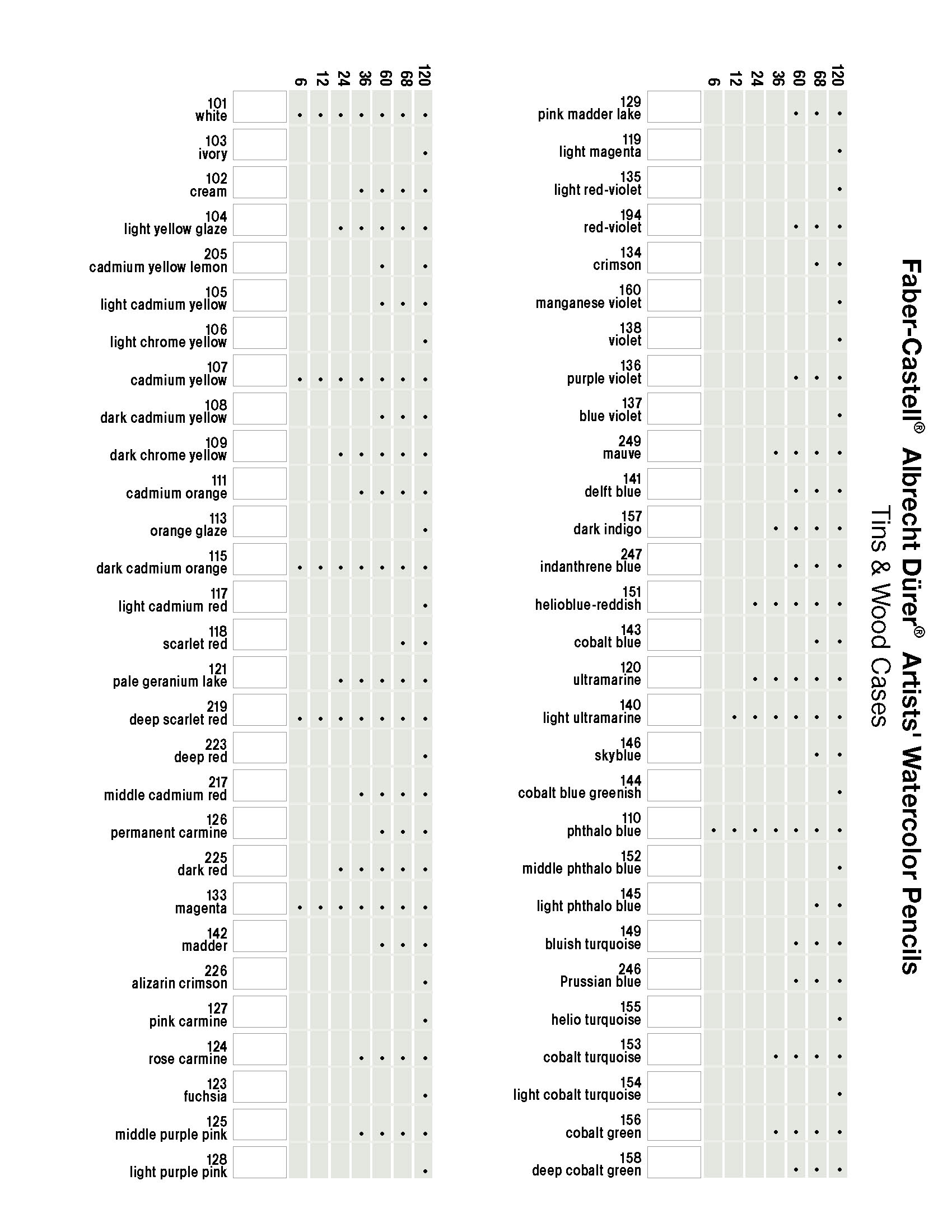 Fill in your own color samples for Albrecht Dürer Watercolor Pencils.